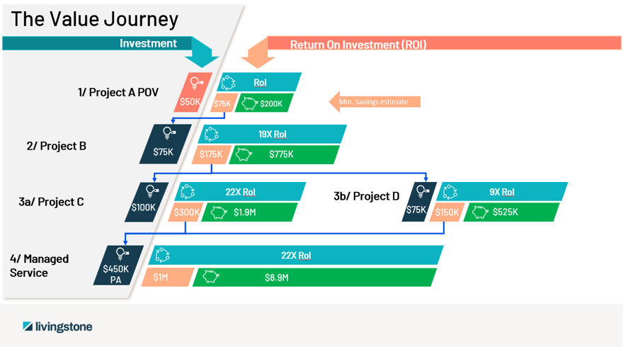 What if these programmes funded their own evolution through direct, transactable savings? Real money that was flowing out of your organisation and now isn't. Capital that flows back into the programme and funds the next phase without requiring another budget approval cycle. A self-sustaining engine that compounds value rather than consuming resources.